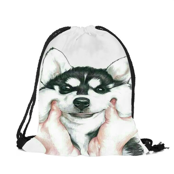 Pink Blue Animal Husky Pug Design String Backpack Women Girls